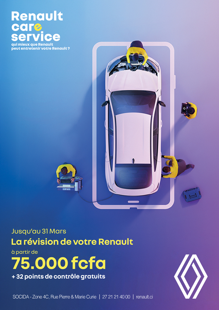 Cher(e) Client(e), Pour garantir la performance et la longévité de votre véhicule, l’entretien régulier est essentiel. Dans les ateliers SOCIDA, nos techniciens qualifiés prennent en charge votre Renault selon les standards constructeur. Jusqu’au 31 mars : 📍 Rendez-vous dans nos ateliers : 📞 27 21 21 40 00 / 21 21 80 82 08 SOCIDA, votre référence Renault en Côte d’Ivoire. |